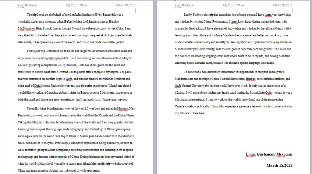 行程圆满结束后,新布伦瑞克省学区教育局国际项目负责官员专门发信给外方院长滕菁女士,给予“中国行”项目极大肯定。汉语班学生返程之后,纷纷发来“中国行”感谢信及千字感言,表达了对国家汉办、孔子学院的感谢,以及此次中国行的收获和对自己人生的深远影响。其中一名社会班学生集合了中国行的所有照片制作成视频,与大家分享了自己此次中国行的精彩瞬间。同时,孔子学院官网刊登了新省孔院“中国行•汉语梦扬帆起航”的文章。