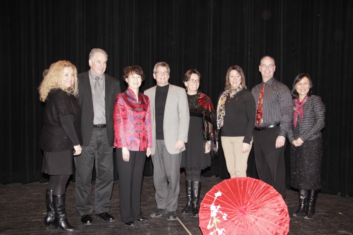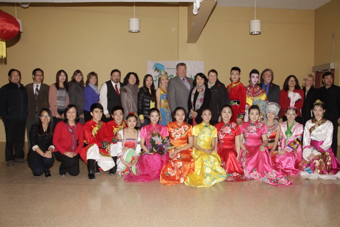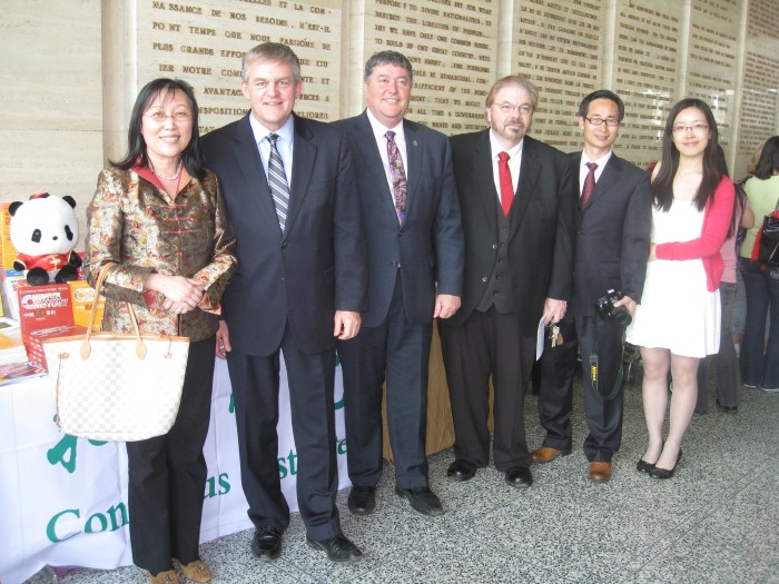 3. 2013年5月新布伦瑞克省省长及高教厅厅长长参观孔院图书展并与中外方院长及志愿者合影。The provincial Prime Minister and the Minister of High Educaiton visiting the Chinese books exhibition