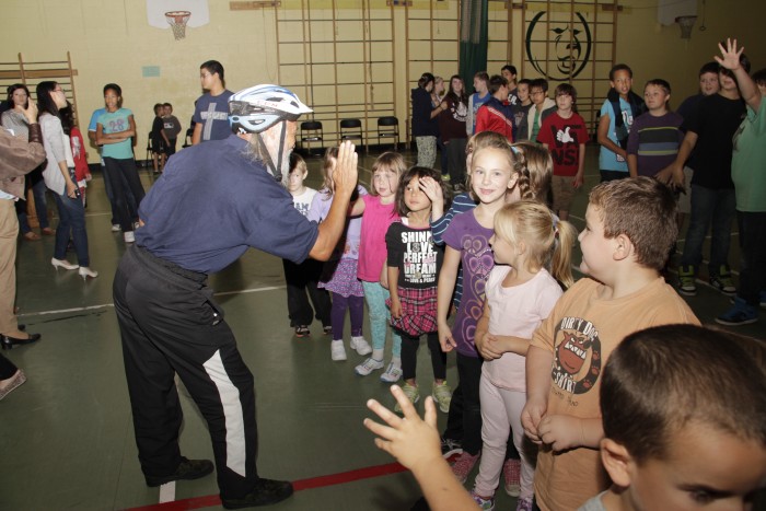 6. 中秋节邀请“蹬三轮环球旅行第一人”华人陈冠明先生跟Birthmount小学的学生们分享传奇经历。The first tri-cycle rider traveling around the world Mr. CHEN Guanming sharing his adventurous experience with the students