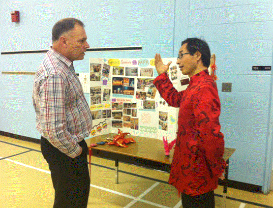 CINB attended the “Multicultural Evening” held by Liverpool Street Elementary School in Fredericton on Nov. 21st , 2013. This was the first time for CINB to spread Chinese culture in this school. There is no Chinese class offered there so far, so CINB also want to take this chance to open the door of spreading Chinese culture to this school.
