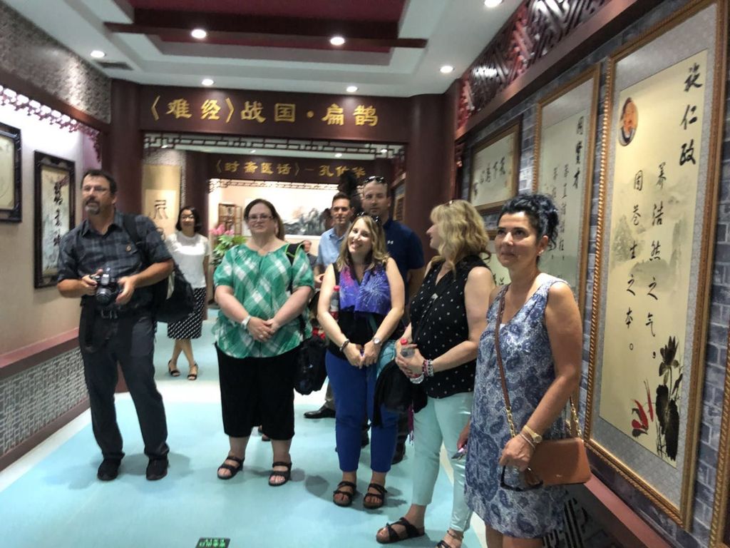 2、 7月2日至7月12日,滕菁院长率领由新省四个学区中小学校长和教师代表组成的8人团访问中国。7月2日晚8点抵达饭店,3日清晨6点出发奔赴北京南站,11点到达曲阜,下午2点参观曲阜师范大学葫芦文化博物馆,3点半访问附中,5点参观中医药学校, 以“高铁速度”拉开了中国之行的序幕。