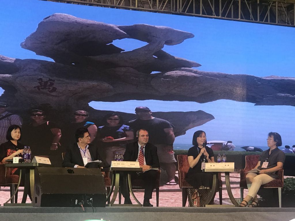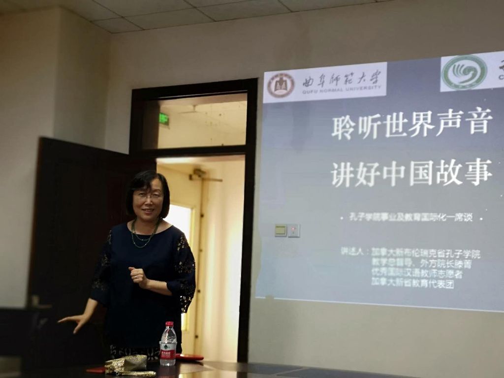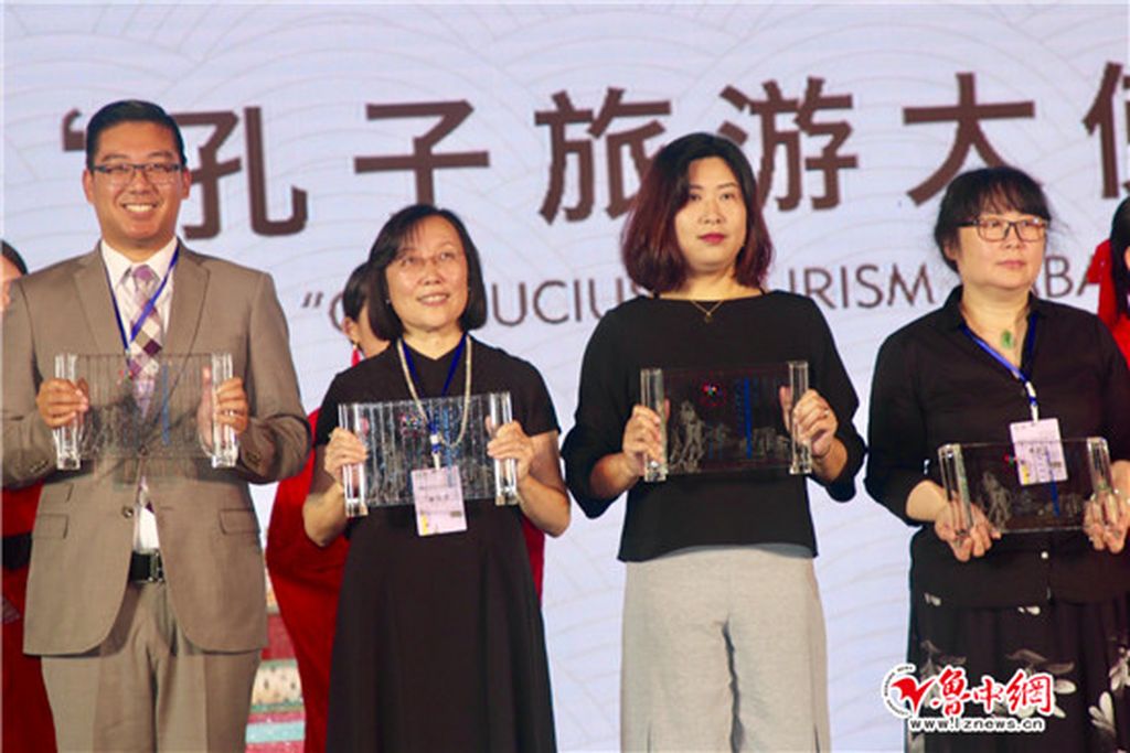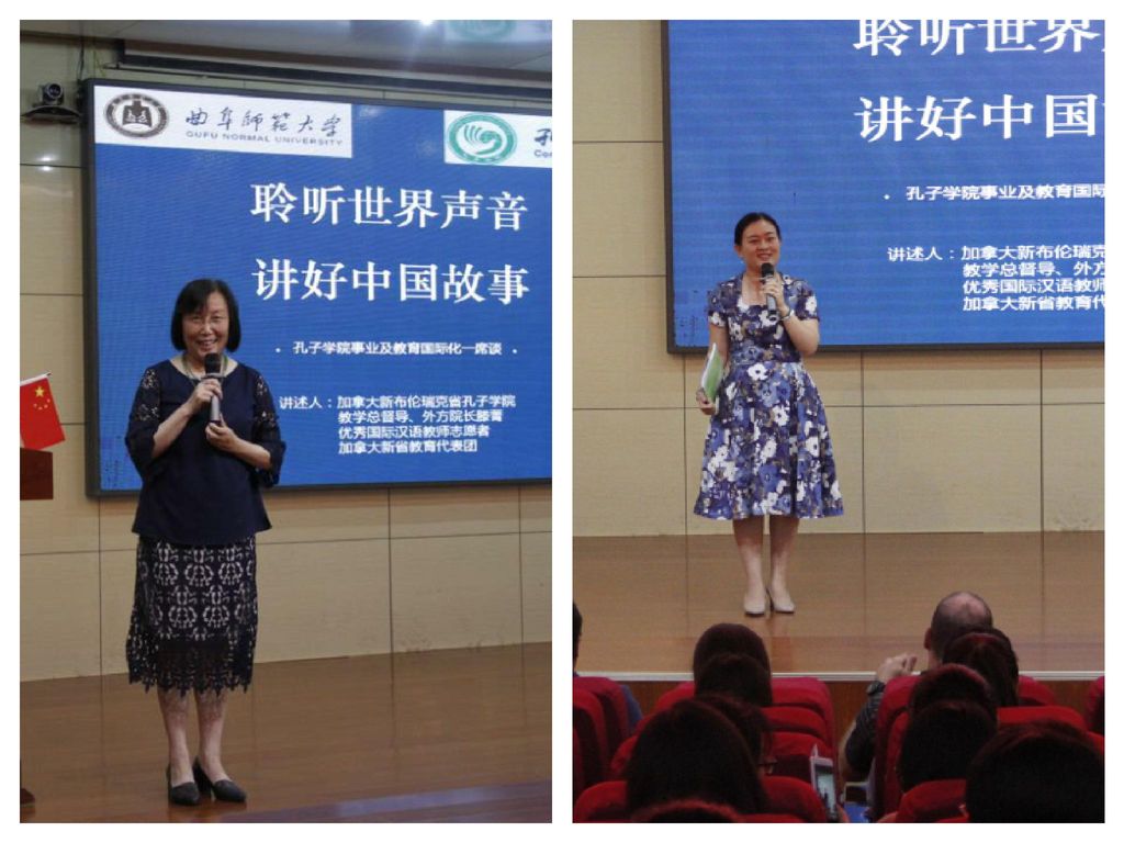 16. On August 14, Teng Jing was invited to participate the “First Global Confucius Institute Shandong Culture and Tourism Promotion Conference” and spoke as a special guest at the forum. She emphasized that CINB was a project of cooperation between New Brunswick Ministry of Education and Shandong Department of Education, with more than 5,000 students every year. Every year the delegation of students as well as educators from NB visit QFNU to learn about Shandong culture. Liam, a high school student, on the top of Mount Tai said, “I believe this trip to China has turned me a better person”; a principal on the beach of Rizhao said, “We are from the side of the Atlantic and now we are touching the Pacific”. In the end, Teng Jing also told the story of the gourds between the Vice President of the Normal University, Hu Qingxue, and the Kimberly, an official of the Ministry of Education NB. At the conference, Teng Jing was awarded the title of “Confucius Ambassador” together with other 43 Confucius Institute directors. CINB was also selected as one of the 30 Shandong Tourism Overseas Publicity Stations.