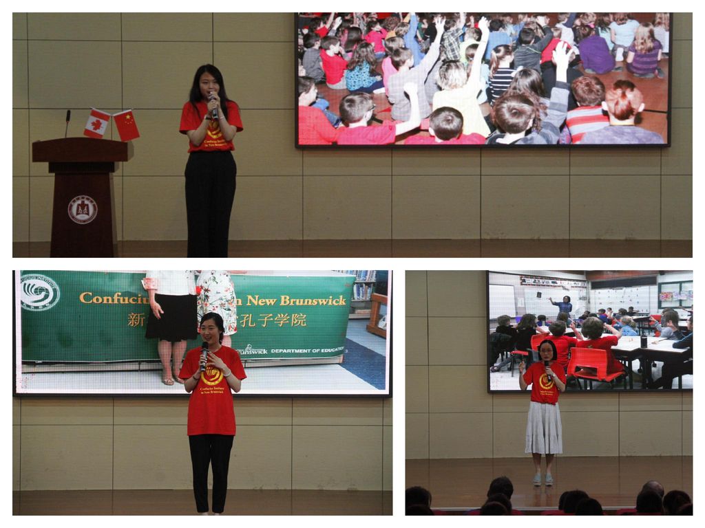 13. On July 17, Teng Jing went to the Communication University of China delivered a speech to more than 160 Chinese teachers who are going to work at the Confucius Institutes. She introduced the promotion of Chinese language in NB province and shared her views on how to strengthen the cooperation between the Chinese and foreign directors. Mr. Duan Yi, an official of Hanban who was in charge of the training, thanked her for her report on the rainy night just before her returning to Canada. He praised that fully reflected her contribution to the career. After the meeting, Wang Yan, who was about to go to the Confucius Institute in Maine as Chinese director, texted her: "Thank you for your selfless share of your valuable experiences with us! I can see that your dedication and personality charm have won the support and recognition of the Canadian side and won the respect of your compatriots. You are my role model!"