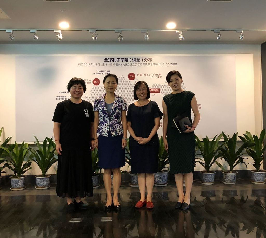 17. On the afternoon of August 21st, Teng Jing and Chen Suhan, American Director of the Confucius Institute in Montana, visited Hanban, and cordially talked with Jing Wei, Deputy Chief Executive of the Confucius Institute Headquarters, and Ren Shifang, Deputy Director of the Division of American and Oceanian Confucius Institutes. Teng Jing reported to Jing Wei about the meeting with the Chinese directors, who were going to the U.S., the drafting of the Chinese curriculum in NB, the participation in Shandong tourism summit forum, and the intended cooperation of online teaching and cultural performance between the Confucius Institute in Montana and CINB, which were approved by the Hanban leaders