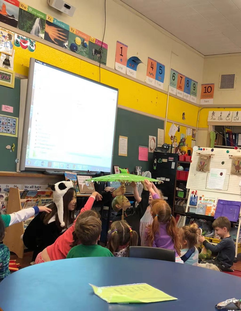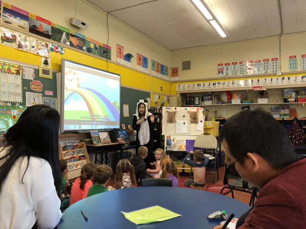 Since Grade 5 students in West Riverview Elementary School has had some ideas of Chinese culture, Xu Mengke, a Chinese volunteer teacher, focused on language teaching in this semester. In the class on October 11th, she used the animated children’s song “Good Morning, Good Night” to teach greetings, and helped children vividly understand and quickly remember them with gestures.