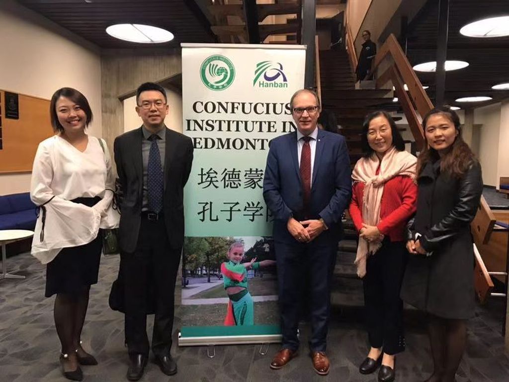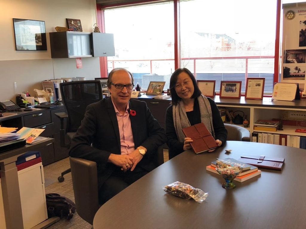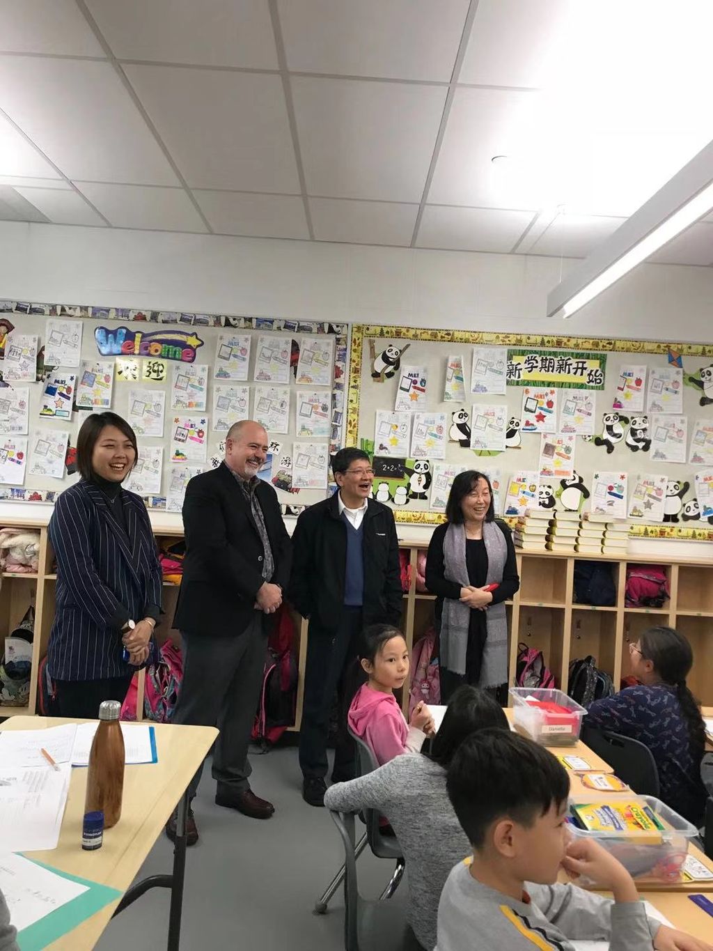 On October 26th, some CINB teachers were invited to the 10th anniversary celebration of the Confucius Institute in Edmonton. The next day of the celebration, Li Wei, Director of Confucius Institute in Edmonton, accompanied the delegation of CINB to visit the local primary and secondary school classes and introduced the situation of Chinese teaching in the area. In the afternoon, they had an informal discussion with local teachers and shared their strengths with each other. In addition to foreign students, there is a great demand for Chinese learning from Chinese Canadians. There are more than 20 Confucius classrooms, all of which carry out Chinese immersion courses. The daily classes are divided into two parts: morning classes and afternoon classes. In the afternoon, all the classes are taught in Chinese. The teachers of CINB were greatly inspired by their teaching style. Teng Jing met with Lorne Parker, Deputy Director of Edmonton Education Bureau, and conducted in-depth exchanges.