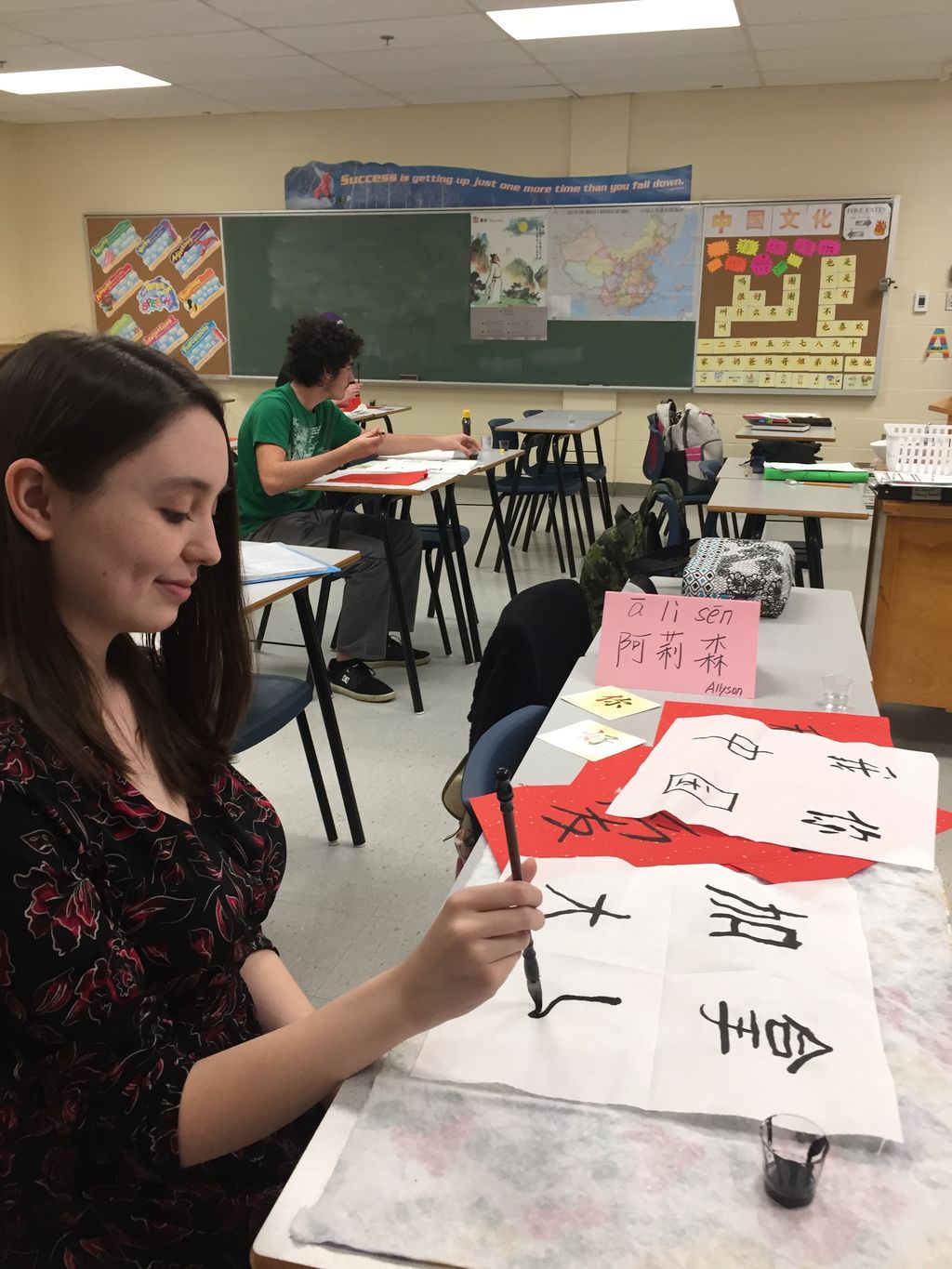 From October 22nd to 26th, a “Miss EWG Contest” was held in Eleanor W. Graham Middle School. Twenty students from the Chinese art class exhibited their works of art, and the top three most beautiful dressing ladies were selected by all the students of the school. After the event, more students joined the art class and experienced Chinese art.