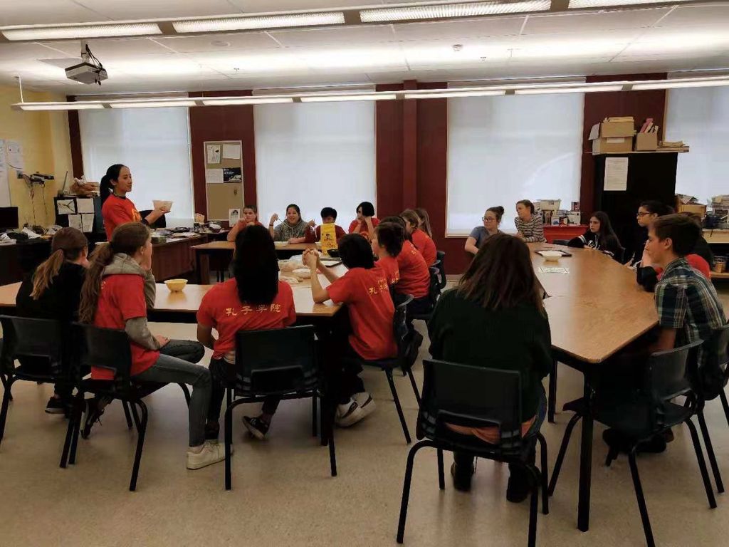 On the afternoon of November 26th, Wang Jingli, a Chinese teacher, and Liang Jiayi, a volunteer teacher, were invited by Ms. Cheryl Warman, coordinator of the community school, to hold a Chinese food experience for the students of the culinary club at Eleanor W. Graham Middle School. Dumpling banquet and fried rice in Chinese style brought different cultural experiences of delicacies to students. The students were guided by the Chinese teachers to make dumpling wrappers, make dumplings and boil dumplings step by step, and finally they tasted and enjoyed their cooking achievements together. After the “first experience” of dumplings, they said they tasted like their favorite, local Perogies. Ethen, a sixth-grade student, said, “Now I have tasted Chinese dumplings. They are delicious and I like them very much. I also find that Chinese and Canadian cuisines are similar, and I want to try more Chinese cuisine in the future.”