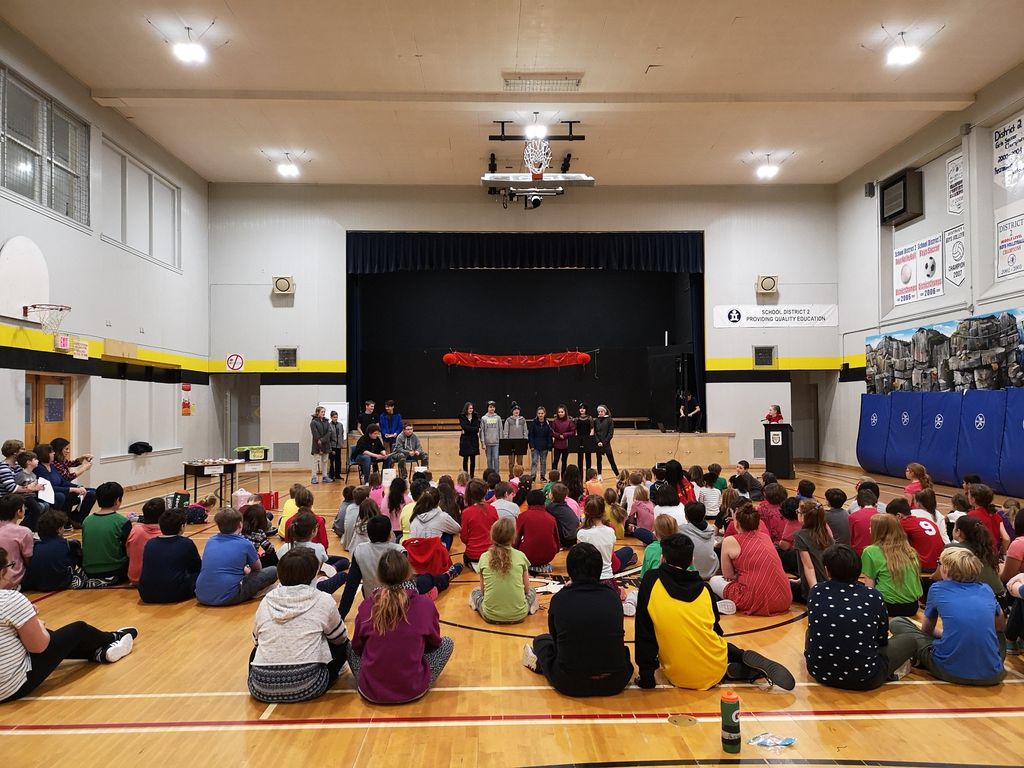 11月30日上午,汉语教师志愿者孙小皎在Hillcrest middle school举办了首届中文歌曲大赛。这是一场覆盖K-8年级的全校性质的比赛,就连没有开设中文课的8年级英语班学生也自愿报名参加。孙小皎为每个年级挑选了适合其年龄的歌曲,并配以符合主题的舞蹈动作,歌词轻松欢快,舞蹈易学有趣。幼儿园活泼可爱的《小星星》,二三年级活蹦乱跳的《两只老虎》,四年级惟妙惟俏的《学猫叫》,高年级的《海草舞》、《青春修炼手册》、《对不起我的中文不好》、《我们的时光》等精彩的唱跳演出,博得全校师生喝彩,近一个月的练习学生们展现出了最棒的自己。