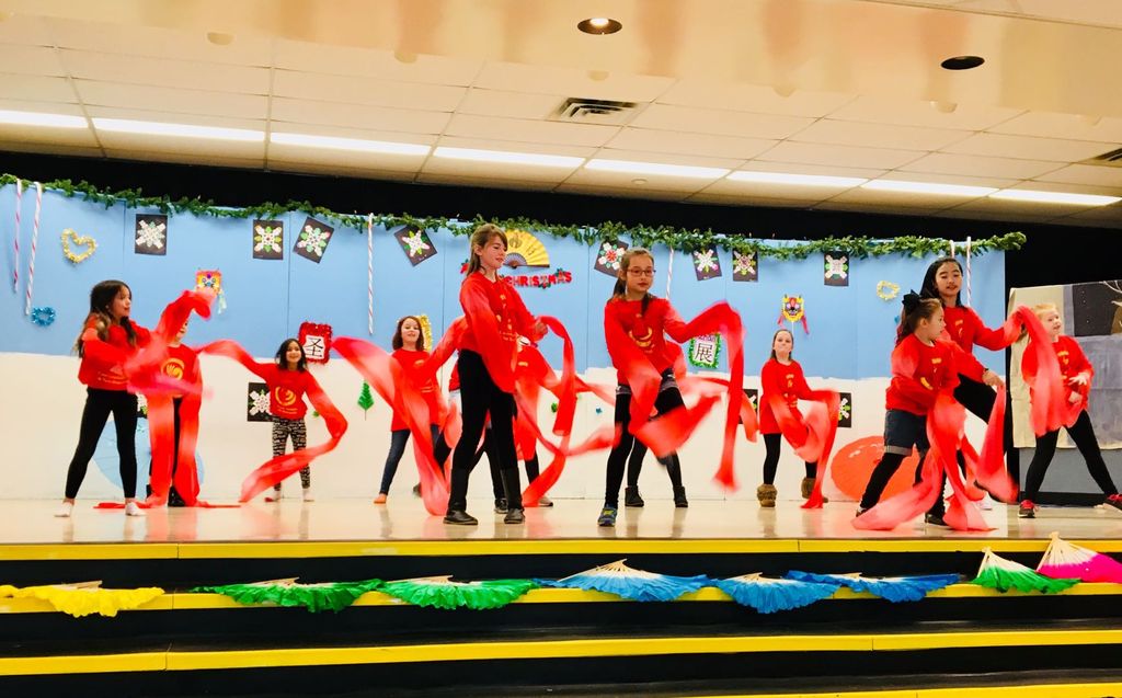 12月19日,汉语教师李艳梅的汉语班学生在Hubbard Elementary School圣诞晚会中表演了两场中国传统舞蹈。孩子们或手持羽扇,动作似白鹤飞翔来表现中国传统文化中的刚柔并济。或身着传统服饰,齐举花伞从容大方,用中国红来彰显中国文化的绚丽多姿,获得了阵阵喝彩。