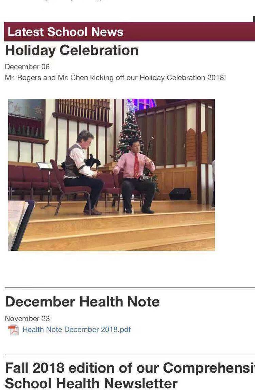 12月5日,新省孔院志愿者陈志圣受邀参加了由Connaught Street School和Grace Memorial Baptist Church 举办的圣诞音乐会,并作为开场嘉宾与音乐教师Mr.Rogers合奏圣诞乐曲 《Jingle Bell》《We Wish You A Merry Christmas》,二胡和风笛的默契配合赢得了在场观众的热情掌声,Connaught Street School官网对此进行了报道。