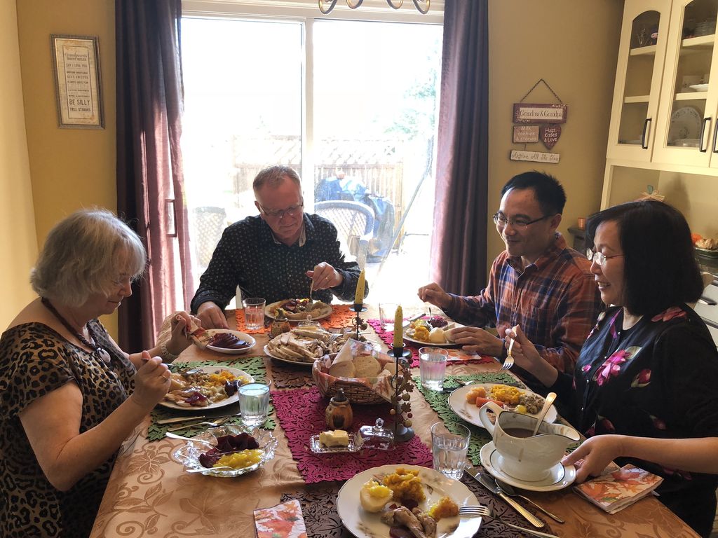 Spending Thanksgiving with a couple of teachers who have been to China many times to teach English, and renewing the friendship between China and Canada. (Canadian director Teng Jing and Chinese director Dai Zunfeng)