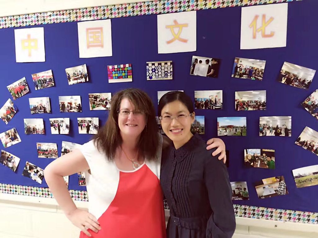 Trick or treat? When we are together, we naturally have a variety of life styles, but more of them are candy-like warmth. (Chinese teacher Wang Jingli and volunteer teacher Liang Jiayi)