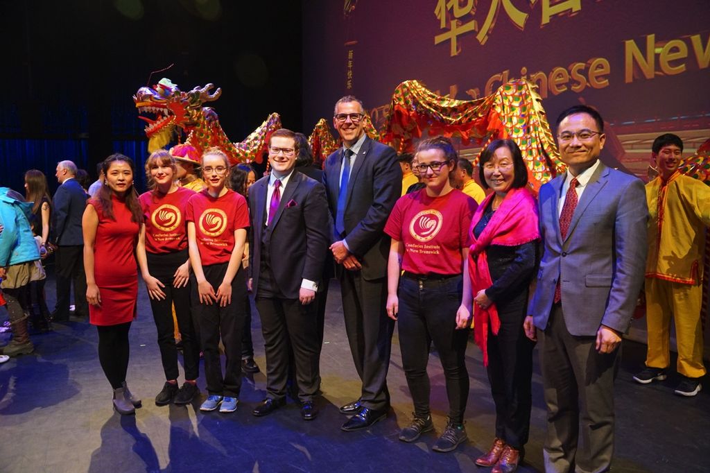 After the event, Teng Qing, the chief teaching supervisor of CI, Dai Zunfeng, the Chinese director, and Don Darling, mayor of St. John, went on the stage to take photos with the performers.