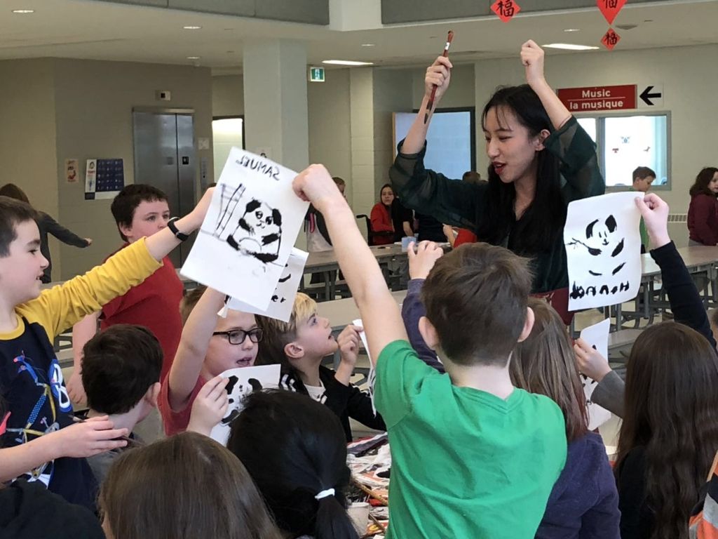 2月11日,汉语教师刘晓唯与志愿者教师许梦可在Riverview east school举办了新春游园体验活动,礼堂内百福齐挂,金猪迎宾,书法区、饺子区、游戏区三个展台依次而列,全校八个年级34个班级近800人在一天时间内分批有序地参加游园活动,热热闹闹地体验了一把中国新年。汉语教师李珊珊、志愿者教师孙小皎前来协助组织。
