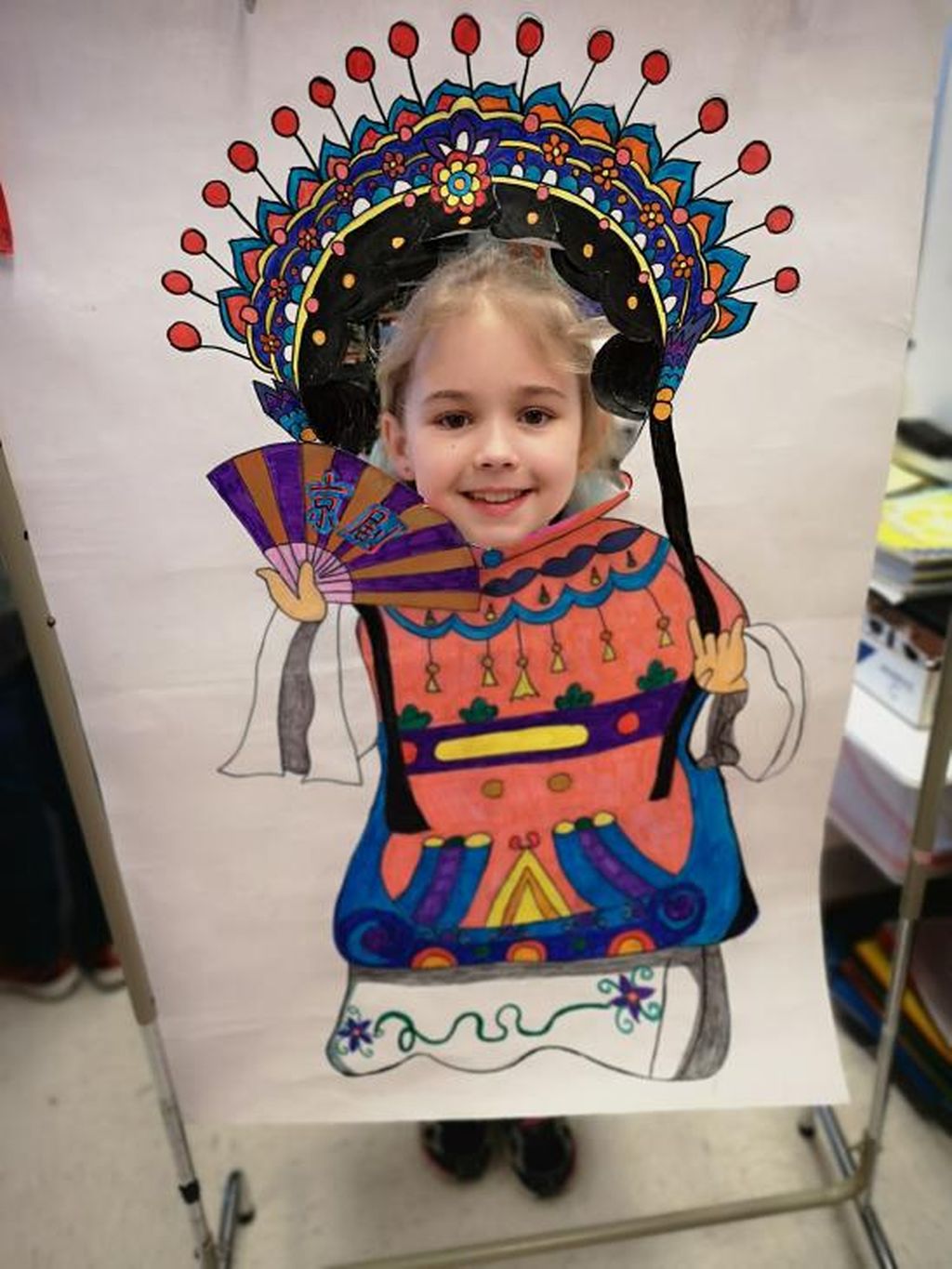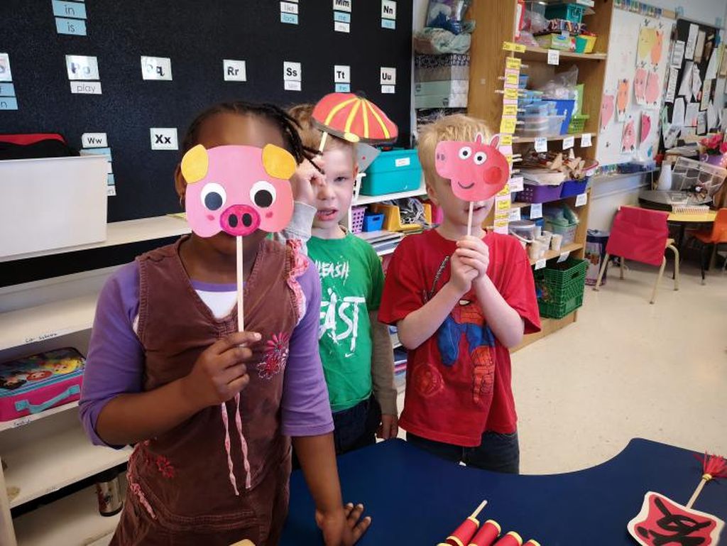 2月27日孔院老师孙小皎受邀参加Queen Elisabeth学校的多元文化节,与一年级的老师Ms.Sweezey和学生一起,设计布置中国展示部分,孔院团队也到场积极协助活动。老师和学生们一起画国旗、做灯笼、剪中国龙,将教室布置的独具中国特色。中国展台共分长城、熊猫、京剧拍照区、写汉字区和中国美食区五部分。