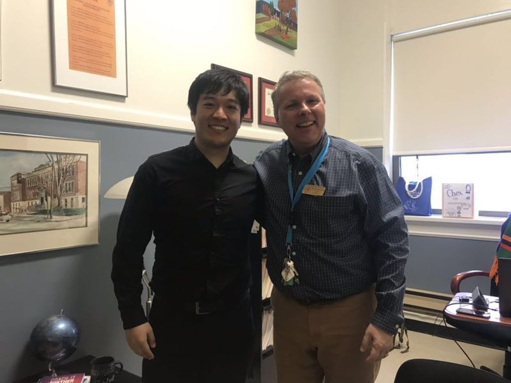 月初,汉语教师陈俊锋、志愿者陈志圣在乔治街初中(George Street Middle School)同该校校长Pierre Plourde进行了会面。就中国语言文化课程开设、未来该校与孔院的合作、语言学习、学生培养等问题进行了交流。校长表示:十分感谢孔子学院能提供这样的机会,不仅可以丰富学生的课堂活动,而且开拓了学生的多元文化视野。就教育本身而言,了解多元文化并从中获益,有利于提升学生的国际化眼光。该校是新省最具多元文化特色的学校,学校有来自世界各地的学生,也欢迎孔院其他优秀的汉语教师来学校工作。