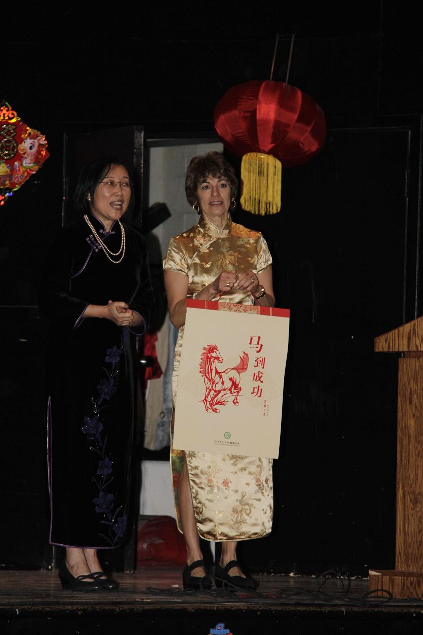 In the end of the Gala, The director of Confucius institute Ms. Teng Jing made a speech and give the Best wishes to all in the new year, she was on behalf of the Confucius Institute gave the present to School.