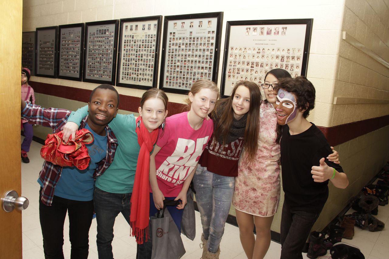 大年初一上午10时,全校师生欢聚一堂共同庆祝2014马年地来临。联欢会上,校长身穿中国传统服饰旗袍上台致欢迎词。接着联欢会正式开始,孩子们介绍了中国春节并表演了丰富多彩的节目,他们改编并表演了舞台剧《美猴王》,精彩的演出博得了阵阵喝彩;汉语俱乐部的孩子们演唱了中国歌曲《新年好》《弯弯的月亮》;舞蹈俱乐部的女孩们带来了精彩的太极扇表演和汉族舞蹈《欢乐中国年》;艺术课老师带领高年级的同学制作并表演中国舞龙,漂亮的中国龙一出现在舞台上就引来了阵阵欢呼。接连而来的中国传统艺术表演,让全校师生目不暇接。浓郁的春节气氛充斥着整个Birchmount学校,让人们仿佛身在中国。