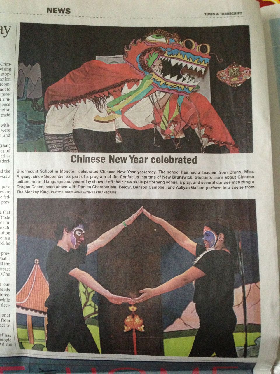 2014年1月31日,蒙克顿市Birchmount学校举办了马年春节联欢会。