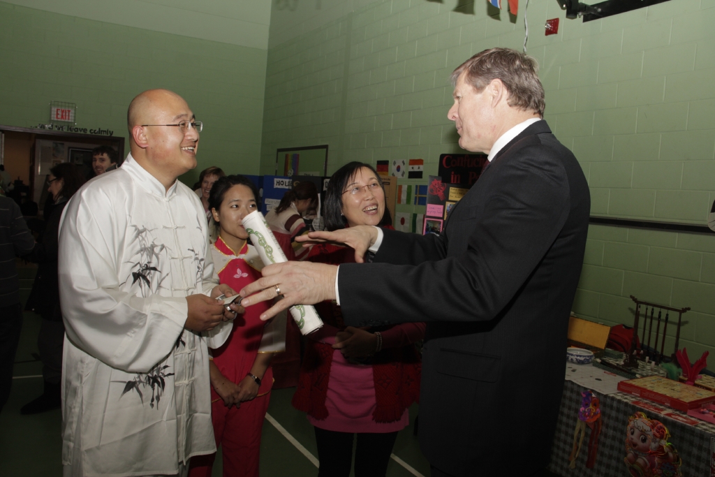 2015年1月21日,新布伦瑞克省孔子学院参加了弗莱市Park Street 小学的第六届“多元文化夜”活动。“多元文化夜”是Park Street小学一年一度的重大活动,每一年都会有很多来自不同国家的移民来此展示各自的文化。而今年,也是新布伦瑞克省孔院第四次参加此次活动。加拿大大西洋国际教育集团(AEI)副总裁,孔子学院执行理事 Dawn Weatherbie 女士,孔子学院外方院长滕箐女士,孔子学院武术教师费发洲先生以及志愿者教师曹曦共同参加了此次活动。