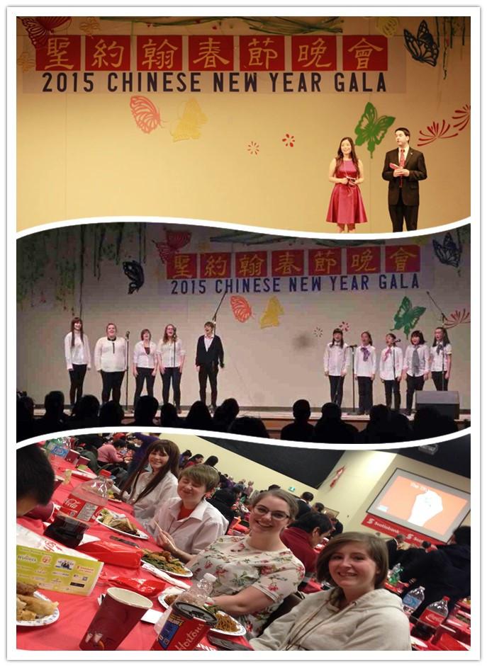 On Feb21st,2015,The Chinese New Year Gala of Saint John was held at River Cross church . Miss Yan Suli, the Consul of the Chinese Consulate-General in Montreal ,Mr. Norton the mayor of Saint john city attended the gala. The Chinese teacher Jie Jiang from CINB leading the students attended the performance. The students brought Chinese song” Where is spring” and the teacher was the MC with the standard Chinese pronunciation , they received public praise from the audience.
