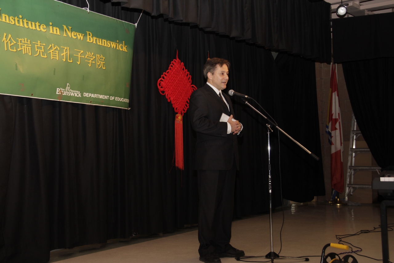 After the seminar, the performances by Chinese and Canadian artists attracted more viewers. Mr. John McLaughlin, Deputy Minister of New Brunswick Department of Education and Early Childhood Development, also came to watch this big art feast. First, Mr. Roger Lord, the famous Canadian pianist, also one of the outstanding students of CINB, brought us a beautiful Chinese folk music playing. At the same time, he also shared his experience of learning Chinese language and his love of Chinese music. After that, Prof. Yang Jian, Chinese famous Jinghu master with his wife, Ms. Pei Yan, Chinese famous opera actress, brought together the fantastic Jinghu show, “North Wind Blows” and ‘”the Galloping Horse,” as well as the opera, “Heaven Fell Down a Sister Lin” and “Ode to the Pear Tree”. At last, Mr. Fei Fazhou, the Tai Chi master of CINB performed a Tai Chi show. The wonderful performances of those artists not only bring the enjoyment for the audiences, but also enhance a sense of identity of art and culture between the two countries.