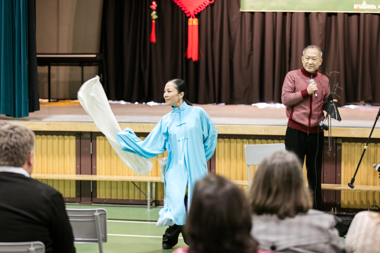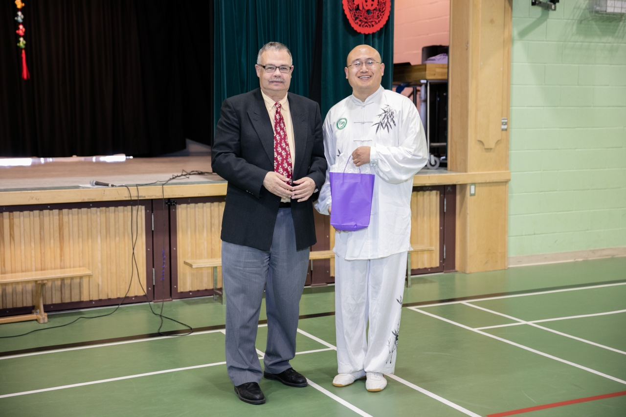 学术讲座之后的中加艺术家表演环节,吸引了更多的观众。许多来自教育部的官员和Park Street小学的教师也纷纷前来观赏。新布伦瑞克省教育厅副厅长(孔子学院理事长)John Mclaughlin先生也在百忙之中亲自莅临观赏这次艺术盛宴。表演中,加拿大著名钢琴家,也是新省孔院优秀学生Roger Lord先生为大家带来了优美的中国民乐演奏。同时,他也跟大家分享了他学习汉语的经历以及他与中国音乐之间的不解情缘。而后,中国著名京胡大师杨健教授与其夫人,著名越剧演员裴燕女士共同带来了精彩绝伦的京胡表演《北风吹》、《骏马奔腾》以及越剧《天上掉下个林妹妹》、京剧《梨花颂》等节目。其后,新省孔院武术教师、太极大师费发洲先生,也为大家带来了精彩的太极拳表演。几位中加艺术大家的倾情演绎,不仅为观众带来了视觉与听觉上的享受,同时也增进了中加两国的艺术与文化认同感。
