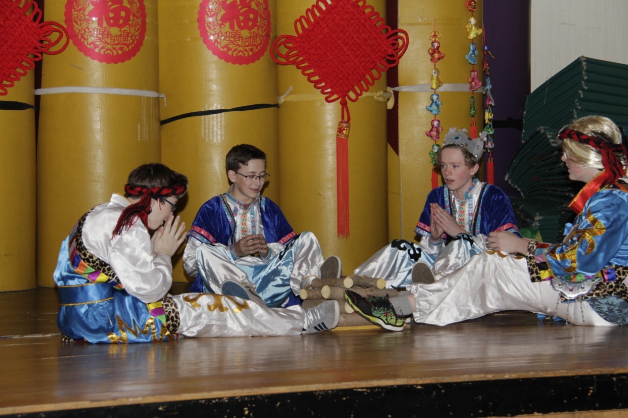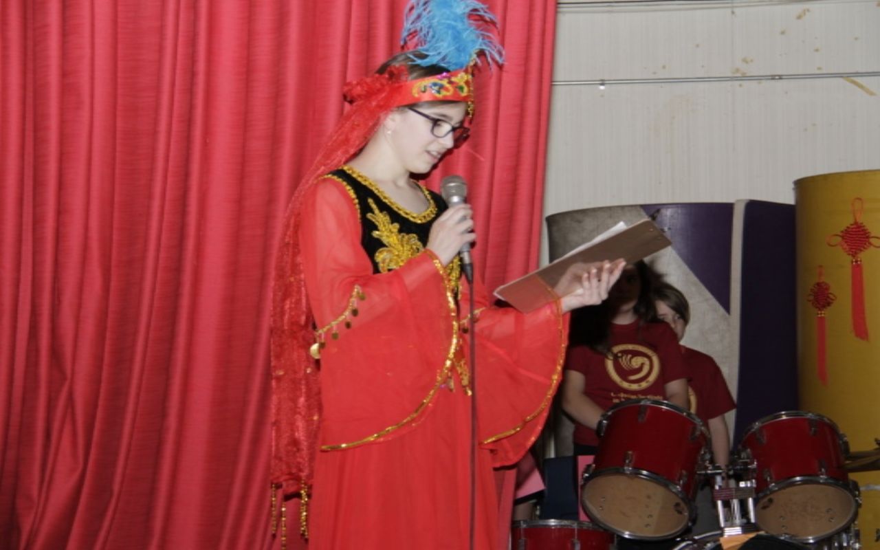 At the beginning of the event, students dragon-danced into the cafeteria, drawing all the audience’s attention. With the red curtains open and peaceful music on, six students performed Chinese Taiji. Then,8G students, dressed in various Chinese Ethnic Costumes, took turns to perform on the stage. Beautiful dresses, cheerful Chinese melodies, elegant moves and creative performance won repeated applauds and cheers from the students. The diversity club students brought a famous Chinese folk song, Jasmine Flower, together with a Chinese style tea ceremony. This group mastered both the lyric and the tune in just three weeks without any previous knowledge of Chinese language. Everyone was very proud of themselves having the opportunity to show the result of their learning and hard working in front the whole school. At the end of the show, Jasmine tea was handed out to the audience to give them a taste of Chinese culture.
