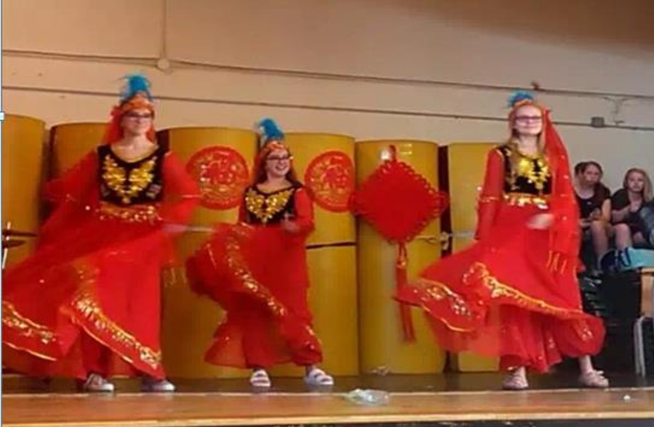 五月三十一日中午,河景中学八年级G班和多元文化俱乐部的同学们在汉语教师志愿者程颖超的组织下,为全校六百余名师生带来了三场精彩纷呈的中国文化展演。