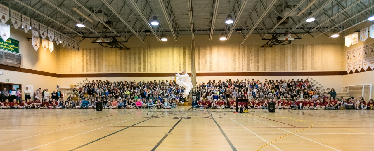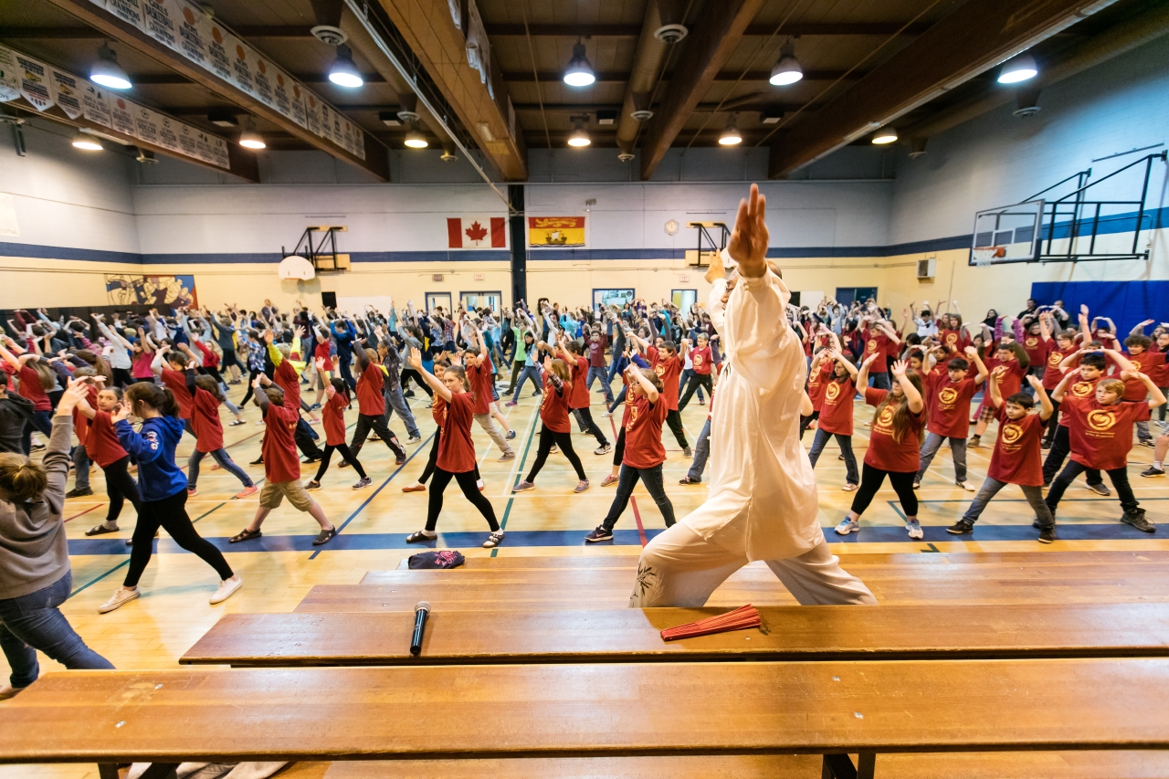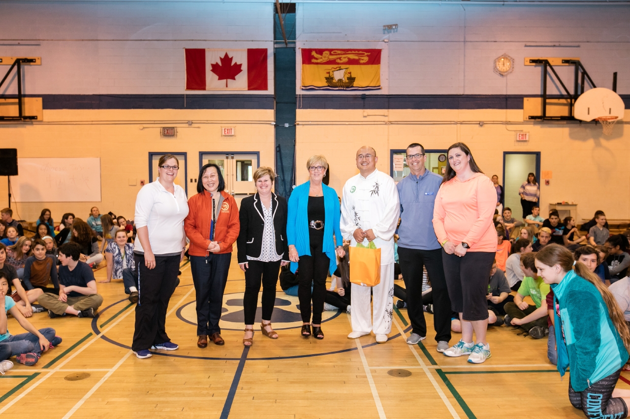 2016年6月1日下午,Quispamsis Middle School 500多人在负责老师的组织下进入体育馆,校方按照我的要求提前布置好了场地,安放好了音响。开场时校长致开幕词,然后我将本学期学过的武术知识总结了一下,向学生展示了少年拳套路和五步扇,表演了陈式太极拳,讲解了刀剑的基本要求,演示刀剑的基本动作。全体师生齐声喝彩!最后请全体六年级同学一起练习少年拳基本动作。期间令我感动的是学生的一次次激烈的掌声和欢呼声,校长和体育同事的热情!在这次活动中,再一次让中国武术在加拿大新布伦瑞克省的学校里生根发芽!