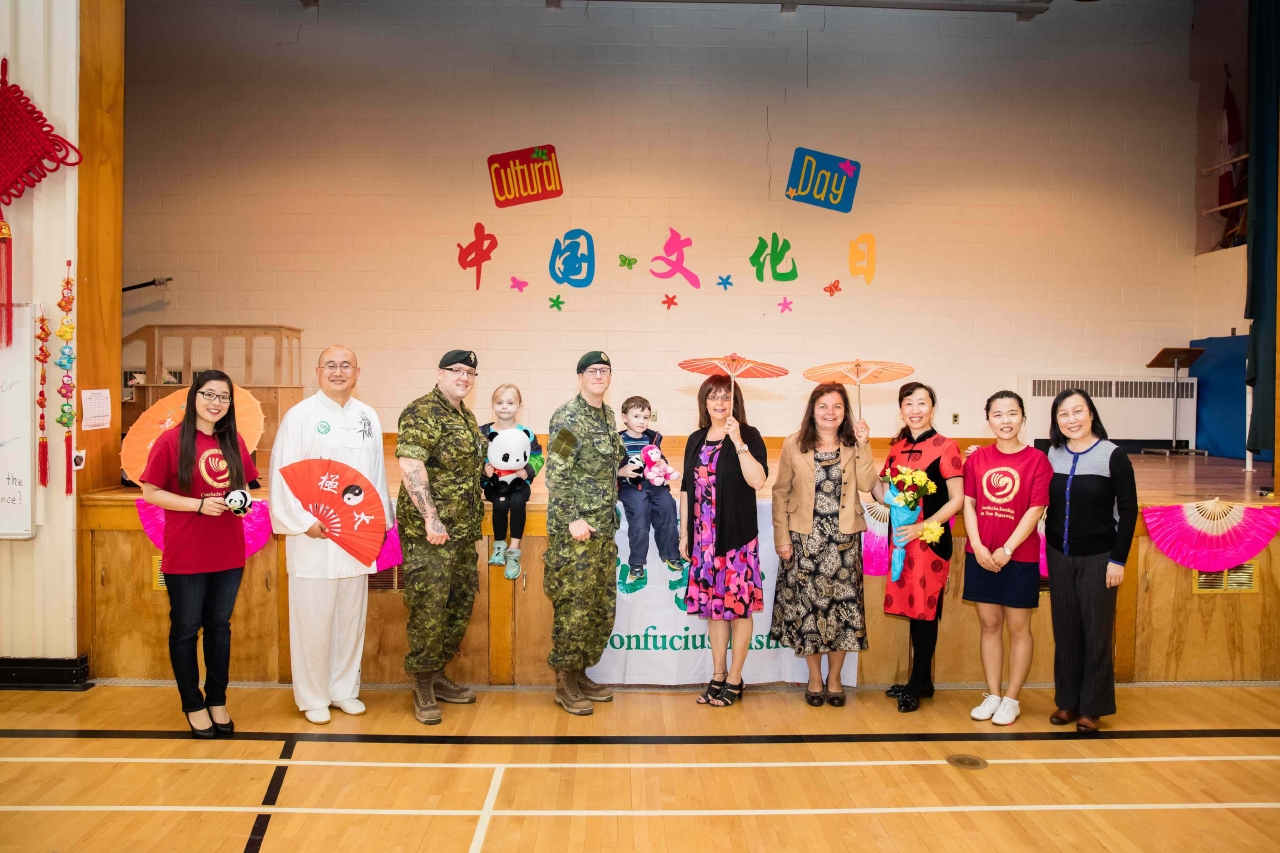 This activity was characterized with a large group of participants, young kids performers, and parents mostly from the biggest military base Gagetown. There were more than 100 students from 6 classes of grade 1 and grade 2 being involved. Their average age is only five or six years old. But they danced so well, and got so big applause with enthusiastic cheers by performing Chinese handkerchief dance, ribbon dance, fan dance, umbrella dance, lantern dance, and aerobics in perfect position. It’s hard to imagine young kids could let the handkerchief rapidly rotate, play fans skillfully, let umbrella dance, let lanterns fly up and down and wave ribbon like dancing snake and flying dragon. The parents showed the pride on their face, all of them were moved by such outstanding performances of their own kids, and felt honored for the children to have a chance to learn in a multi-cultural atmosphere. When Chinese songs "jasmine", "wish you prosperity", "blooming peach blossom", "dancing tonight", "spring dawn" sounded in the gym, all the audiences moved with music rhythm and followed the kids’ dance to shake up. The gym was completely intoxicated in the atmosphere of Chinese culture.