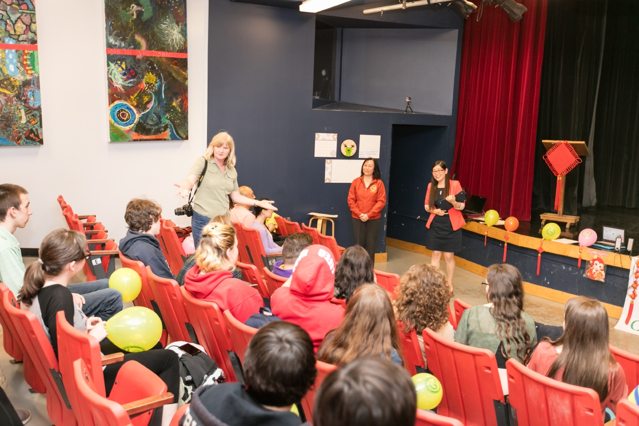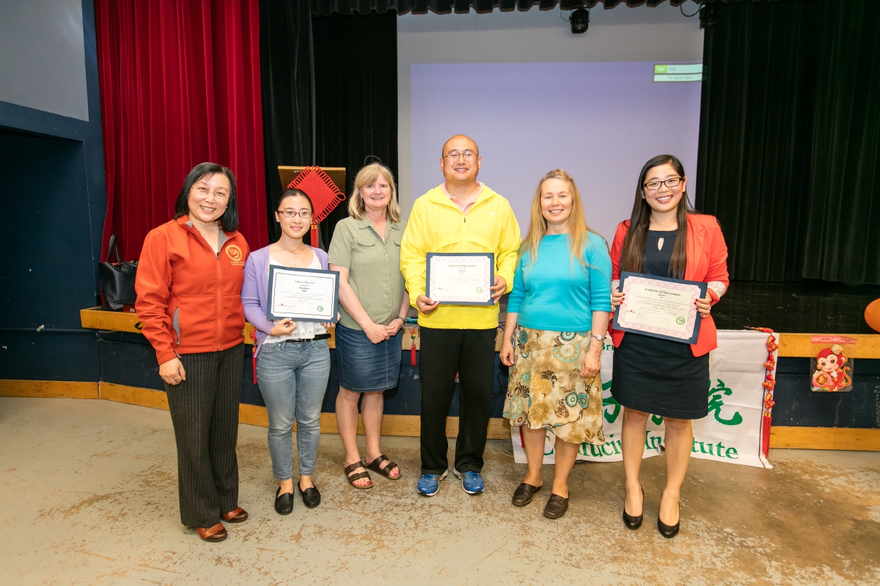 Ceremony started with a short video,which recorded students performance during Chinese class and Chinese culture activities. Then the foreign director of CINB, Ms. Tengjing, and Vice Principal, Ms. Murren Diamond gave speeches to congratulate students who get the certificates and expressed thankfulness to Miss. Jie Jiang, who have taught at SJHS for three years. At the same time, they issued certificates to every student. The ceremony is finished with a farewell party.