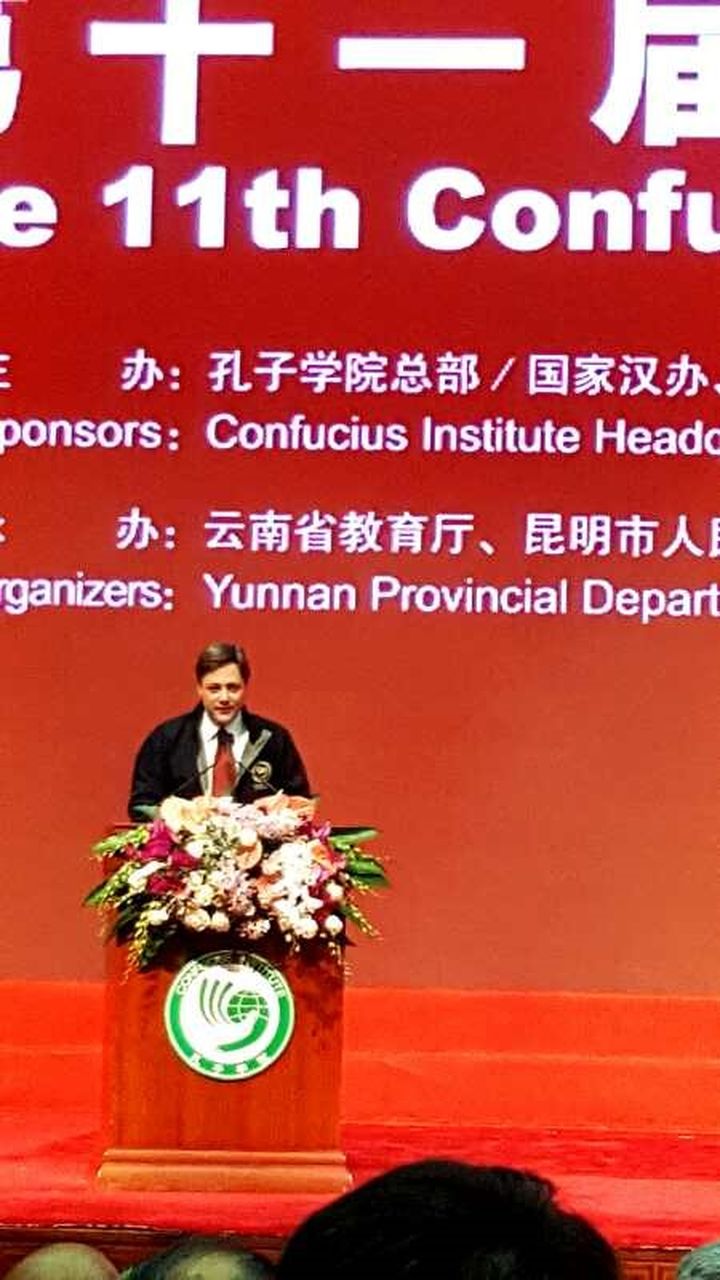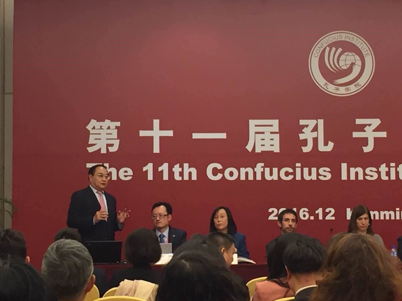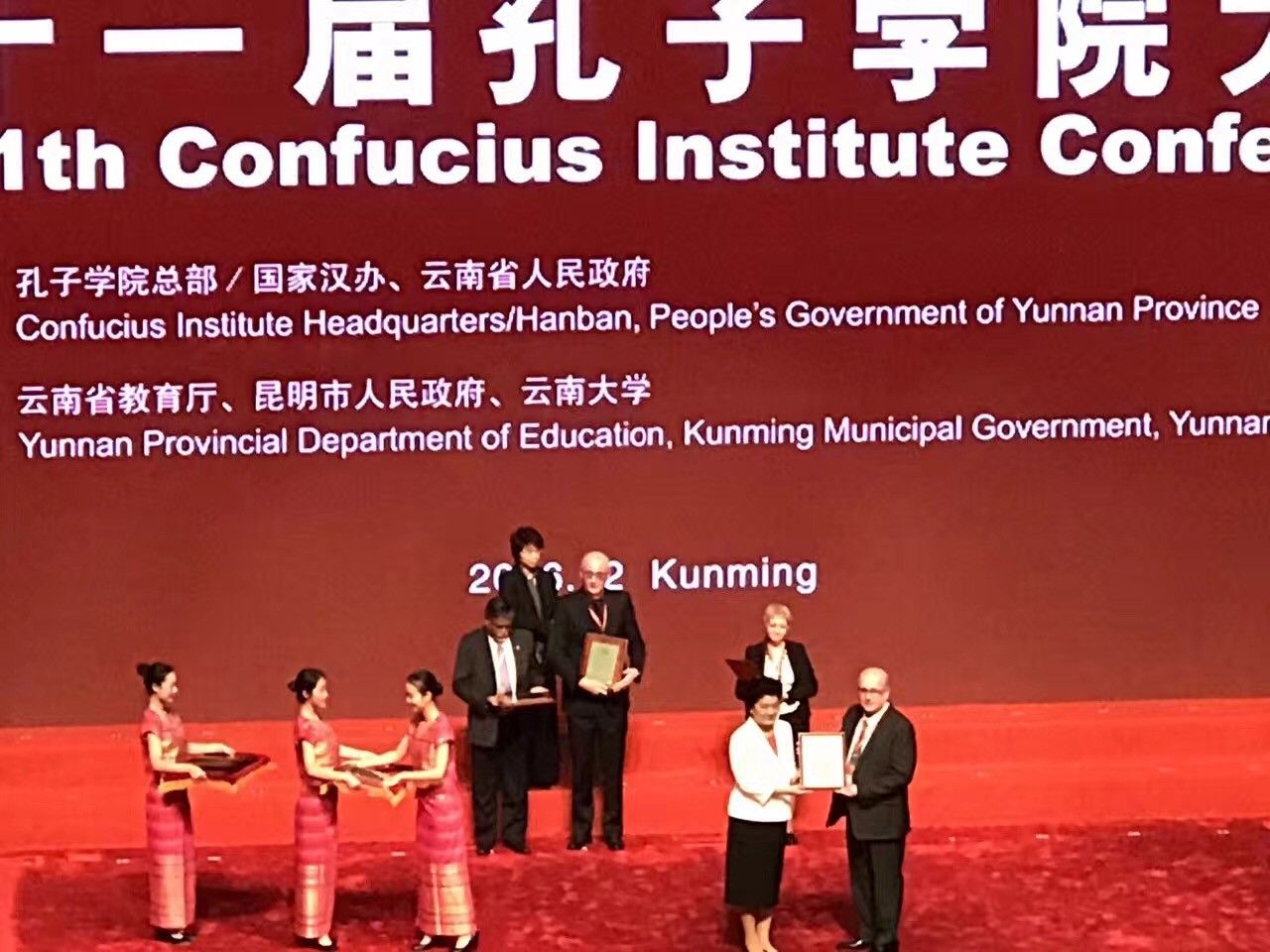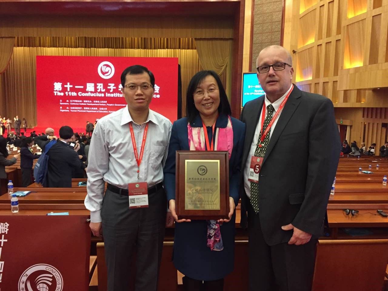 12月10日至11日,第十一届孔子学院大会在云南昆明隆重举行。中共中央政治局委员、国务院副总理、孔子学院总部理事会主席刘延东女士出席并致辞,为全球孔子学院先进个人和先进单位颁奖。新省孔院荣获“先进孔子学院”,本次大会上,共有25个先进孔子学院和5个先进孔子课堂获表彰,我院为加拿大地区唯一获奖单位。