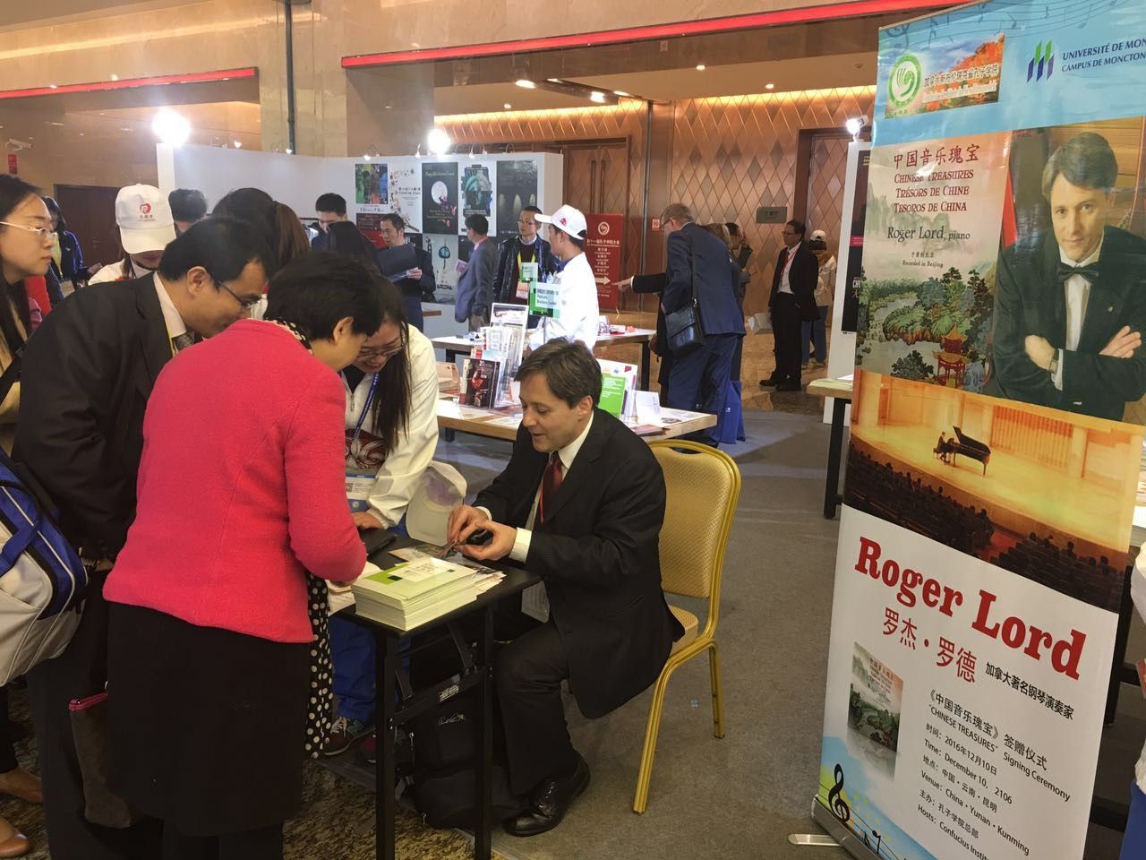 As an important part of the 11th Confucius Institute Conference, the Confucius Institute Chinese Textbooks and Cultural and Creative Works are also on display during the conference. At this fair, Mr. Roger Lord is on behalf of New Brunswick with his Chinese Piano CD which attracted many fans.