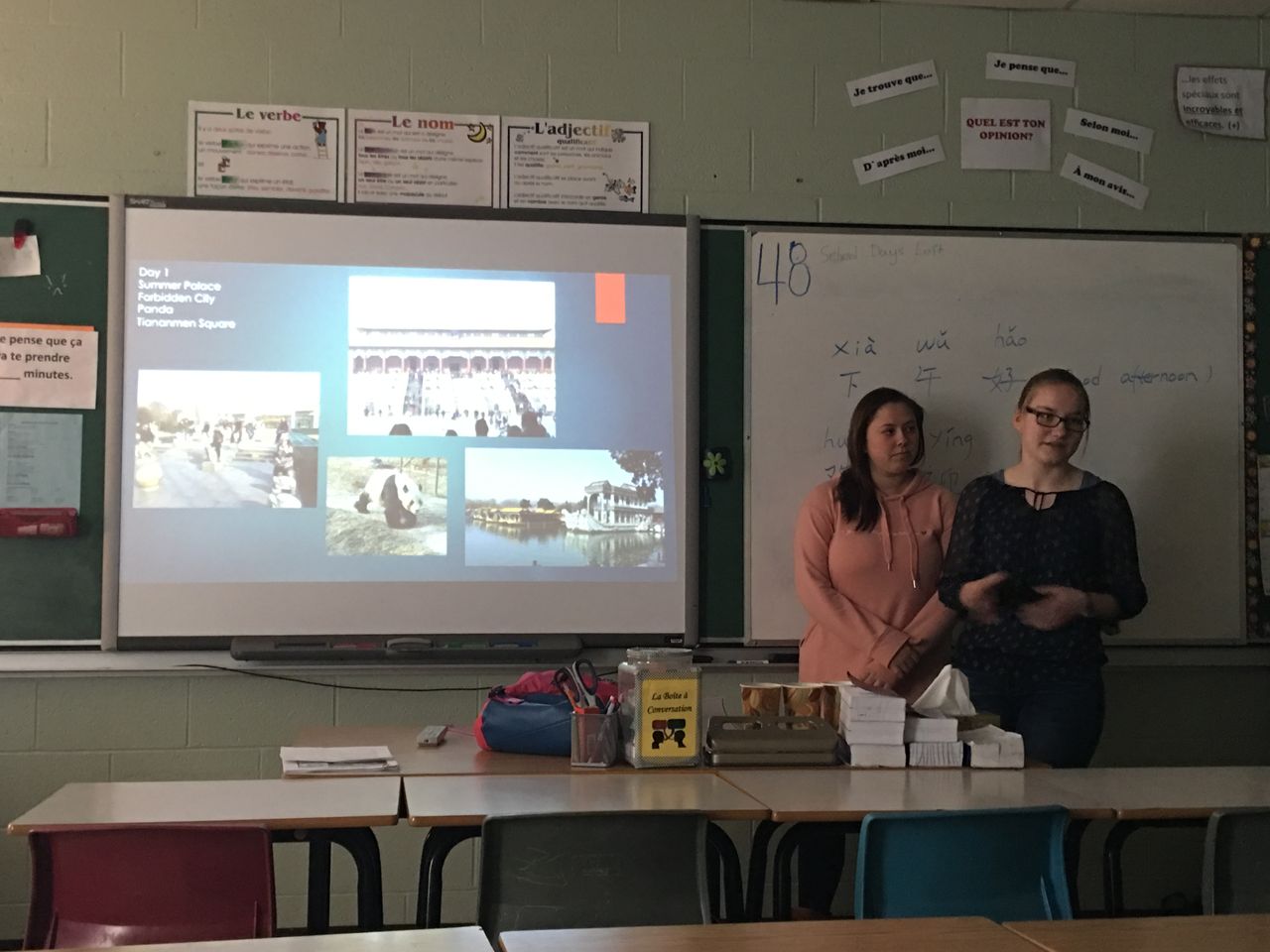March 24, 2017, Friday, funny culture day, is Mandarin class students’ favorite day! Harbour View high school welcomed two special teachers, Lacey and Valerie, two students from Mandarin class of last semester, who just got back from the Spring China’s trip. They started off to China on March 6 with enthusiasm and curiosity for the ancient oriental culture; and returned with deep attachment. We’ve had planned twenty minutes for this presentation, but it turned out to last for the very whole class period because of students’ enthusiasm and endless questions!