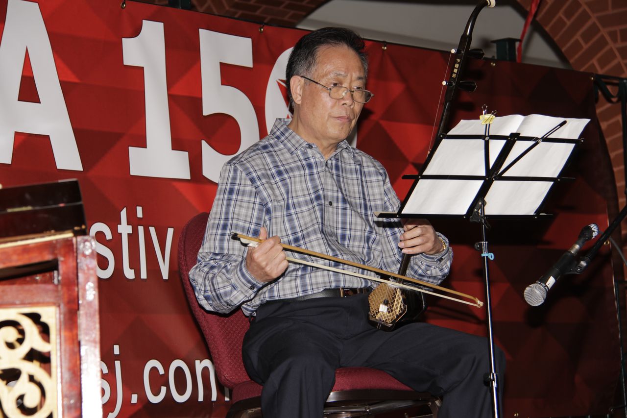 聚亲朋之力,奏中加之情。汉语教师张晓宇的父亲来加拿大探望女儿之际,得知新省孔院将参加“亚洲文化遗产月”活动,随即全力支持,以爱国之精神扬华夏之乐章。用一把借来的二胡与当地华人的杨琴共同演奏了一曲“二泉映月”。其旋律的细腻、缠绵、哀戚、柔美,无不令在场观众动容。语言有别,音乐无界。在大洋彼岸奏响的中国乐曲,不仅是一种难得的音乐享受,更借此拉近了中加友谊,展现了儒学倡导的“美美与共”的大同精神。