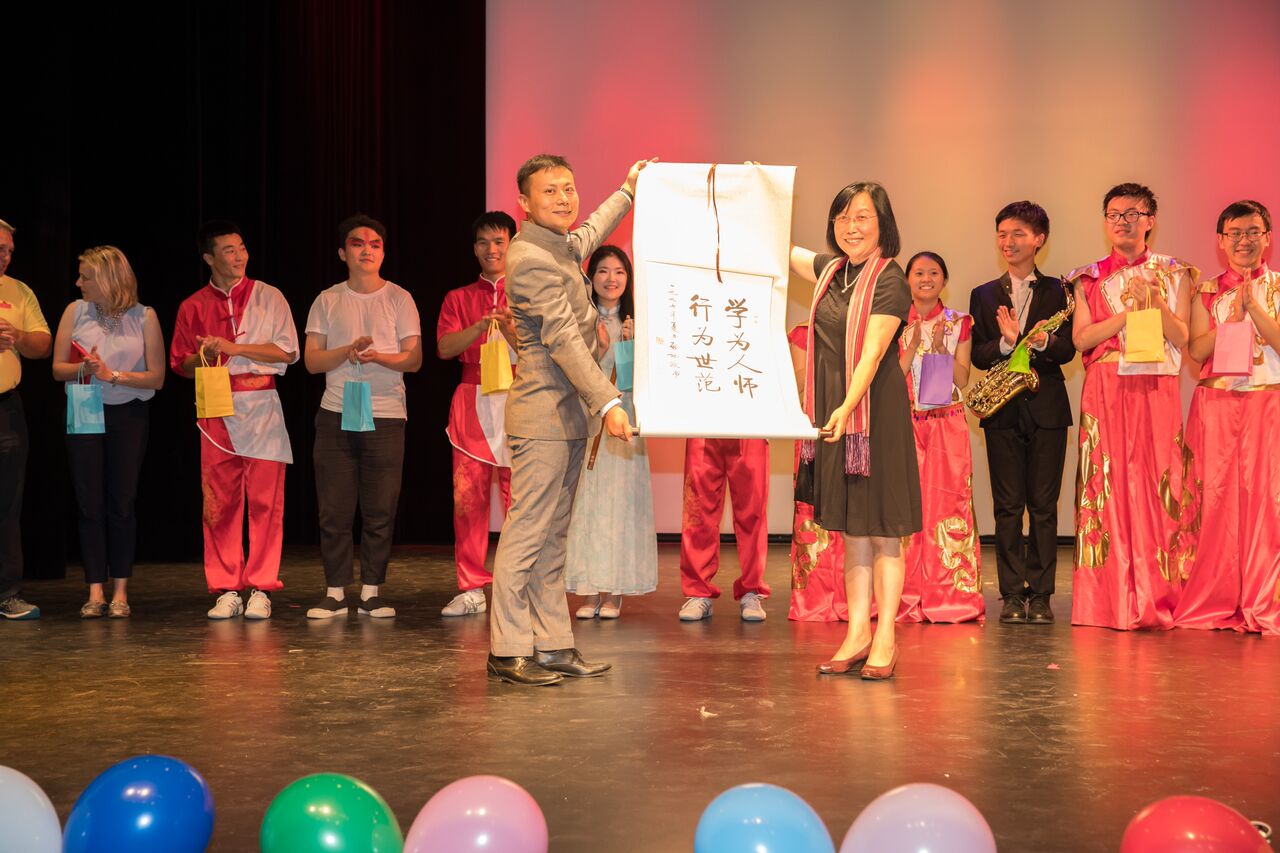 After the performance, Ms Teng Jing on behalf of CINB gave a speech, expressed thanks to Hanban Beijing Normal University performers for bringing the wonderful performances, and thanks to the local education department for supporting CINB Chinese programs, and also thanks to RHS secondary school teachers and students for the smooth conduct of this event to provide support and help. Finally, the two sides exchanged gifts and took pictures.