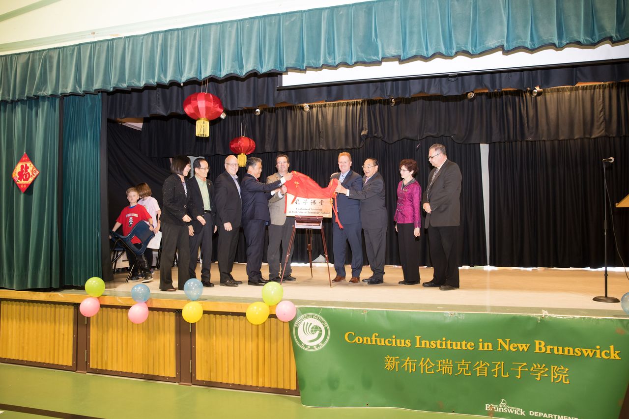 当地时间2017年11月30日,加拿大新伦布瑞克省孔子学院举行了孔子学院十周年庆典及相关系列活动。新省教育厅厅长Mr. Brian Kenny,新布伦瑞克省教育和早期儿童发展厅副厅长,大西洋国际教育集团总裁、首席执行官,新省孔院理事长Mr. John McLaughlin,曲阜师范大学副校长扈庆学一行四人,当代教育学家王本中校长,新省孔院理事会成员、加皇国际教育集团董事长彭建华博士,大西洋国际教育集团副总裁,孔子学院执行理事Mrs. Dawn Weatherbie,弗莱市议员、新省英语教育学区西区教育局局长,新省孔院外方院长、教学总督导滕菁女士等,全省100多位教育官员、校长驱车来到首府参加庆祝孔子学院10周年及孔子课堂揭牌仪式。