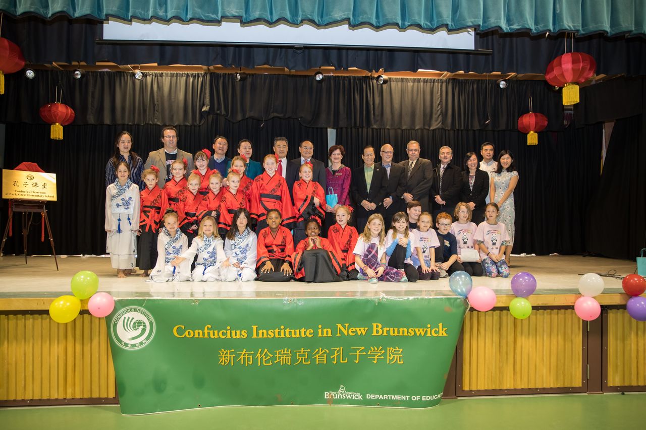 On November 30, Confucius Institute in New Brunswick (CINB) held the 10th anniversary celebration and a series of related activities. Mr. Brian Kenny, director of Education Department of New Brunswick, Mr. John McLaughlin, Deputy Minister of New Brunswick Department of Education and Early Childhood Development and President and CEO of Atlantic Education International (AEI) and chairman of CINB, four people from Qufu Normal University with the vice president, Mr.Hu Qingxue, and the president, famous contemporary educator, Mr. Wang Benzhong, member of CINB Board of Directors and chairman of AKD International, Dr. Francis Pang, Executive Director of CINB, Mrs. Dawn Weatherbie, councillor of Fredericton, directors of English District of New Brunswick Education Department, the foreign director of CINB, Mrs. Teng Jing, over 100 educational officials and presidents gathered together in Fredericton to attend the 10th anniversary of CINB and the opening ceremony of Confucius Classroom in Park Street Elementary School.
