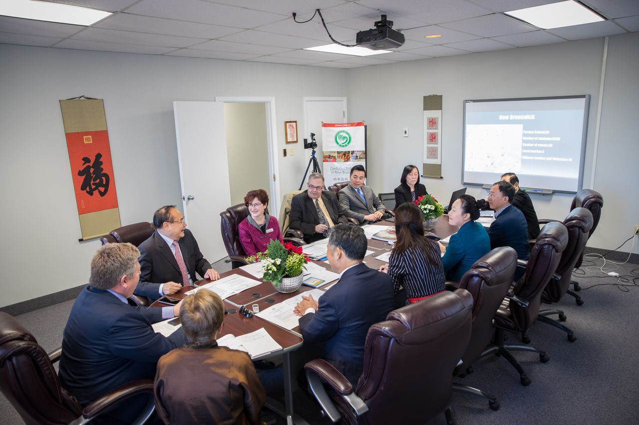 In the afternoon, board members of the Confucius Institute held an annual meeting in 2017. The Canadian members, including Assistant Deputy Minister, New Brunswick Department of Early Childhood Development, Mr. Chris Trandwell, Dr. Francis pang, and Vice President AEI, Executive Director of CINB, Mrs. Dawn Weatherbie, and Chinese board members, including Vice President of Qufu Normal University, Mr. Hu Qingxue, Prof. Cao Li, Prof. Li Shanyang, and Mr. Wang Benzhong attended to this meeting which was host by Deputy Minister of New Brunswick Department of Education and Early Childhood Development and President/CEO Atlantic Education International (AEI), Mr. John McLaughlin.