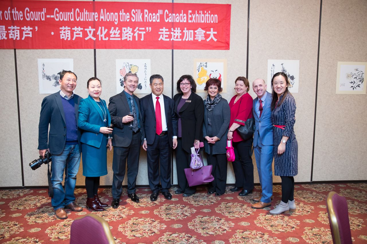 The vice president of Qufu Normal University, Mr. Hu Qingxue made a speech on behalf of the Chinese partners and made a keynote speech entitled “ ‘Glamour of the Gourd’—Gourd Culture Along the Silk Road” Canada Exhibition. Then, there was an opening ceremony for the “Gourd Painting Studio”. In order to express his congratulation to CINB, Mr. Hu gave 30 beautiful gourds painting to the CINB which won a round of applause from the audience.