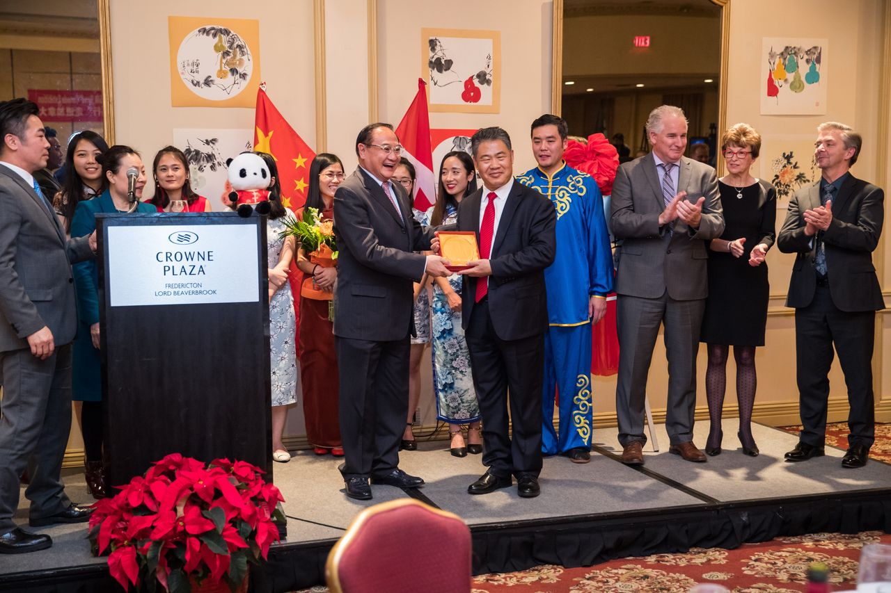 The event kicked off in the beautiful Chinese music of the pianist, the excellent student of CINB, Mr. Roger Lord. The director of the education department addressed the banquet and gave Dr. Francis Pang a gift for the celebration of 20-year friendship between AKD international and New Brunswick.